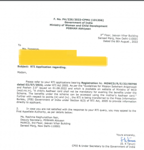 RTI reply from WCD मीनाक्षी तिवारी 21/01/2023 Share this Facebook Messenger Twitter Pinterest Linkedin Whatsapp Reddit Email Share this Facebook Messenger Twitter Pinterest Linkedin Whatsapp Reddit Email अन्य ख़बरें 07/02/2026 यूपी एसआईआर: चौथी बार बढ़ाई गई समयसीमा, 10 अप्रैल को प्रकाशित होगी अंतिम सूची 07/02/2026 मणिपुर: कुकी उपमुख्यमंत्री, आदिवासी विधायकों को लेकर कुकी-बहुल इलाकों में विरोध-प्रदर्शन जारी 07/02/2026 अदालतें किसी महिला को गर्भावस्था जारी रखने के लिए मजबूर नहीं कर सकतीं: सुप्रीम कोर्ट 07/02/2026 भारत-अमेरिका व्यापार समझौता: भारत ने अमेरिकी सामानों पर टैरिफ में बड़ी कटौती की