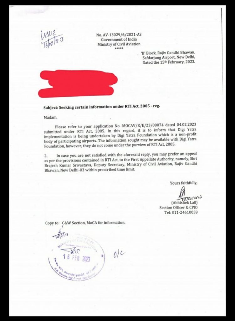 मंत्रालय के जवाब में कहा गया है, ‘मांगी गई जानकारी डिजी यात्रा फाउंडेशन के पास उपलब्ध हो सकती है, हालांकि, वे आरटीआई अधिनियम 2005 के दायरे में नहीं आते हैं.’