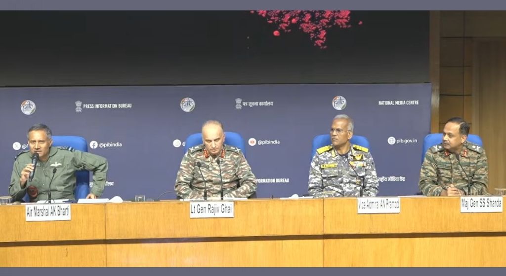 ऑपरेशन सिंदूर पर सैन्य अधिकारियों की प्रेस कॉन्फ्रेंस. (फोटो: पीआईबी लाइव स्ट्रीम से स्क्रीनशॉट)