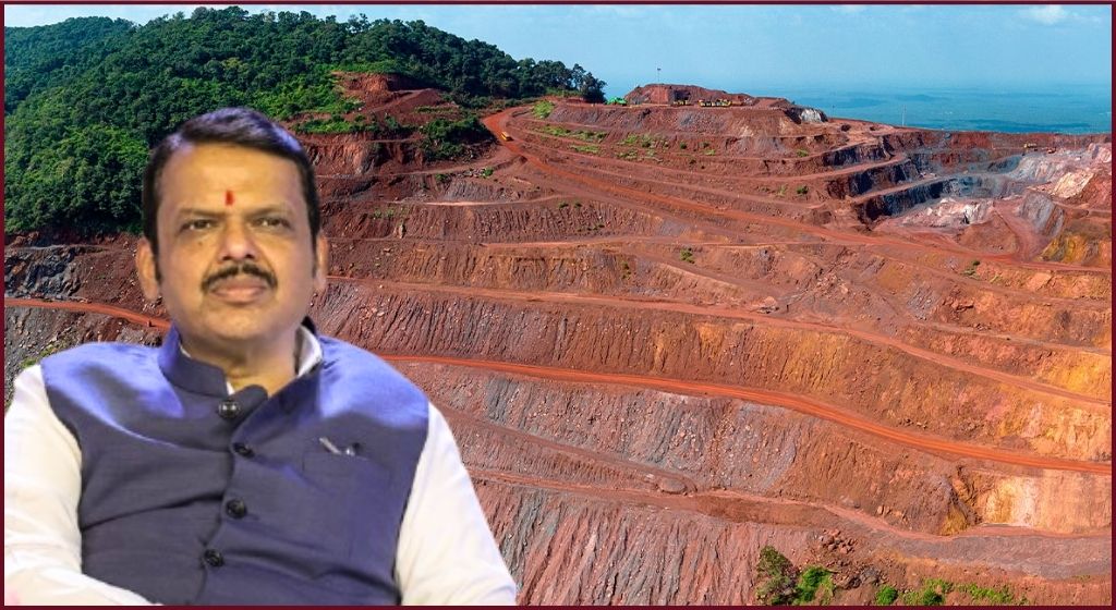 महाराष्ट्र के मुख्यमंत्री देवेंद्र फडणवीस. (फोटो साभार: फेसबुक) | पृष्ठभूमि में सुरजागढ़ खदान. (फोटो साभार: lloyds.in)