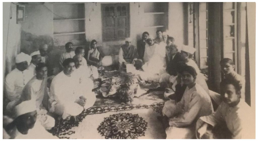 असल में जवाहरलाल नेहरू के सन 1935 में काशी आगमन पर बांसफाटक मुहल्ले में पंडित रामानंद मिश्र के आवास पर ‘रत्नाकर रसिक मंडल’ की ओर से उनका अभिनंदन समारोह आयोजित हुआ था. बीच में जवाहरलाल जी और उनके पीछे श्रीमती कमला नेहरू को पहचाना जा सकता है. बाएं से क्रमशः दिनेशदत्त झा, जयशंकर प्रसाद, सांवलजी नागर, लक्ष्मीकांत झा और जनार्दन झा ‘द्विज’ हैं. एक व्यक्ति को नहीं पहचाना जा सका. पीछे की पंक्ति में कांतानाथ पांडेय ‘चोंच’, कविराज प्रताप सिंह और गणेशदास जी हैं और दाहिनी ओर क्रमशः शिवप्रसाद मिश्र ‘रूद्र’, बाबू संपूर्णानंद, बलदेवप्रसाद मिश्र, रामानंद मिश्र, ज्योतिभूषण गुप्त, आचार्य रामचंद्र शुक्ल, प्रेमचंद, एक अज्ञात सज्जन और भवेशदत्त झा हैं.