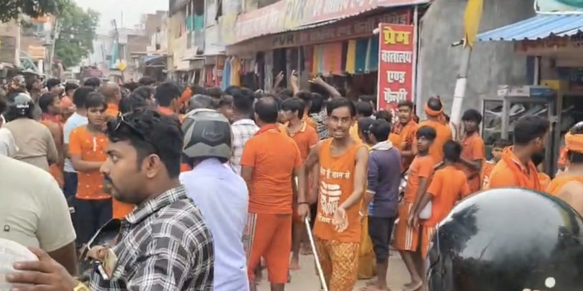 कांवड़िये लाठी-डंडों के साथ ‘जय श्री राम’ का नारा लगा रहे थे