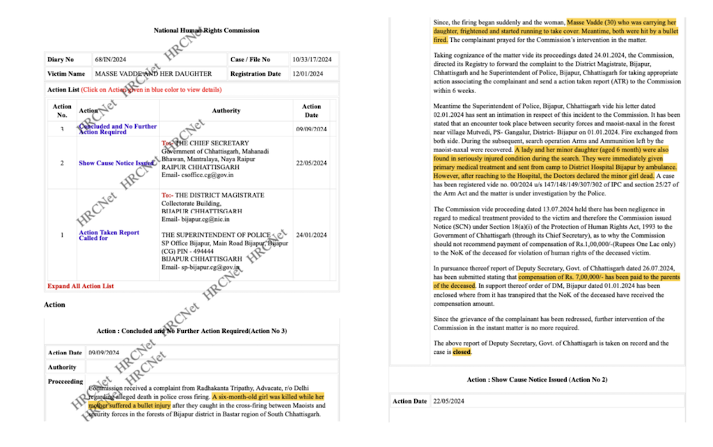 छत्तीसगढ़ में लोगों और बच्चों को बिना नाम के दफना दिया गया, तथा कभी-कभार मुआवजा देने के आदेश के साथ शिकायतों को चुपचाप बंद कर दिया गया और अधिकांश मामले लंबित ही रहे.