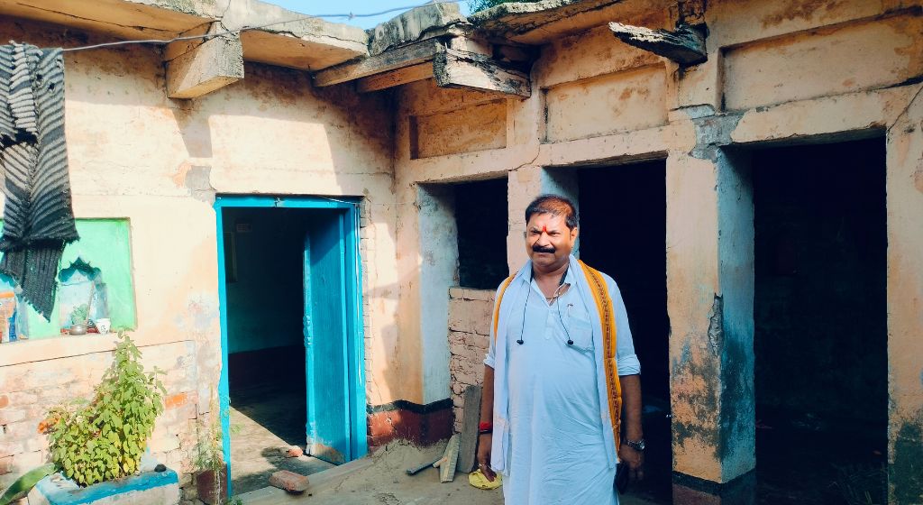 46 वर्षीय अरविंद पांडेय भाजपा नेता हैं और इसी गांव के निवासी है. अपना घर दिखाते हुए कहते हैं, ‘ इस 9 कमरे के घर में मेरे पिताजी गोपालजी पांडेय का जन्म हुआ था. मेरे बाबा बासरोपन पांडेय ने बड़े जतन से इसे बनवाया था. हमें पता चल गया है कि यह घर अब नहीं बचने वाला है, सब सदमे में हैं.’