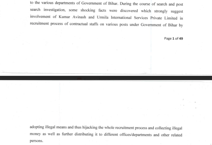 आयकर विभाग ने कुमार अविनाश और इस कंपनी के प्रति ‘कठोर कार्रवाई’ की मांग की ताकि “संविदा भर्ती प्रक्रिया में भ्रष्टाचार को खत्म किया जा सके और भर्ती प्रक्रिया को पारदर्शी बनाया जा सके’.
