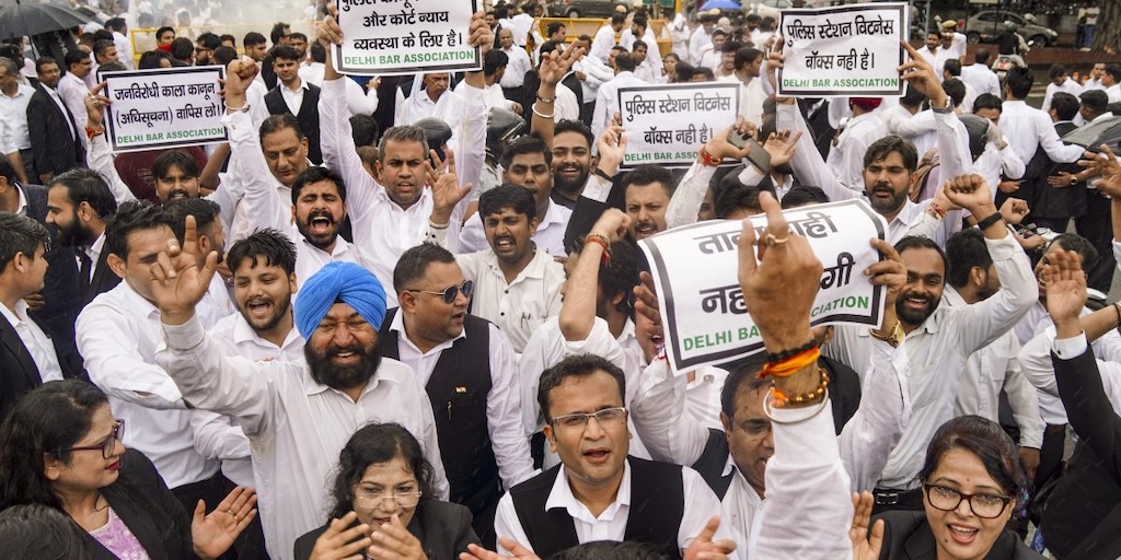 पिछले हफ़्ते शहर भर के वकीलों ने हड़ताल शुरू की थी, जो बुधवार को और बढ़ गई. वे उपराज्यपाल वी.के. सक्सेना द्वारा पारित उस अधिसूचना का विरोध कर रहे थे, जिसके तहत जांच अधिकारियों और अन्य गवाहों को पुलिस थानों से गवाही देने की अनुमति दी गई थी.