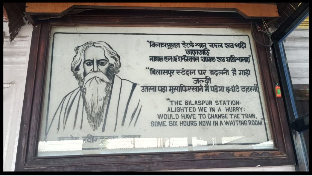 अब बिलासपुर स्टेशन पर पूरी बांग्ला कविता हिंदी और अंग्रेजी अनुवाद सहित लगाई गई है, जिस पर अंकित है– ‘यह कविता कविगुरु श्री रवींद्रनाथ टैगोर द्वारा सन 1918 में बिलासपुर स्टेशन के प्रतीक्षालय में लिखी गई. और फिर 10.12.2012 को रवींद्रनाथ ठाकुर का 5 रुपये का डाक टिकट विशेष आवरण सहित जारी हुआ, जिसमें अंकित है– ‘रविन्द्र नाथ टैगोर एवं उनकी धर्म पत्नी श्रीमती मृणालिनी देवी सन् 1900 में अपनी एक यात्रा के दौरान बिलासपुर स्टेशन के प्रतीक्षालय में छः घंटा रुके. उन्होंने इसका वर्णन अपनी एक कविता में किया है.’