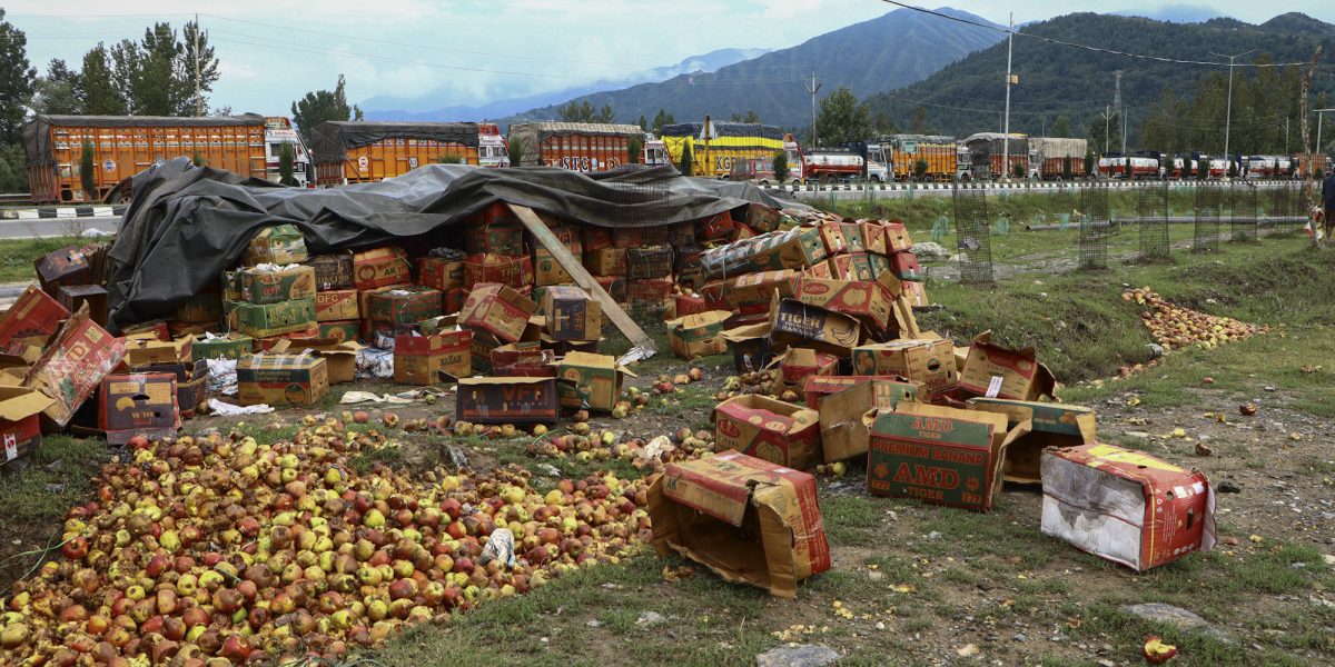 कश्मीर में हज़ारों फलों से लदे भारी ट्रक, कुछ तो लगभग तीन हफ़्ते से रुके हुए हैं. जम्मू संभाग के कुछ हिस्सों में हुए भारी भूस्खलन के कारण घाटी और देश के बाकी हिस्सों के बीच एकमात्र बारहमासी नेशनल हाईवे भारी वाहनों के लिए बंद हो गया है.