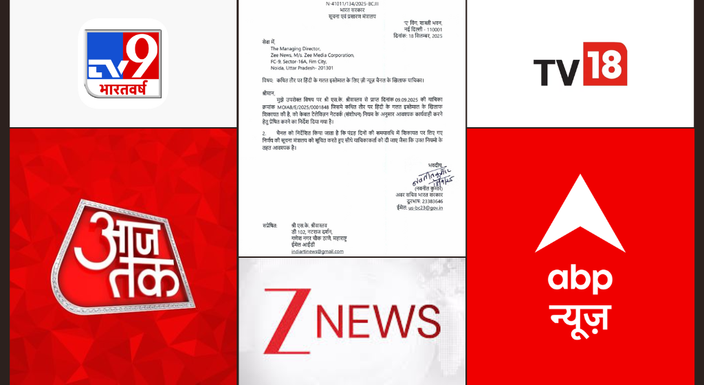 18 सितंबर 2025 को सूचना एवं प्रसारण मंत्रालय के अवर सचिव नवनीत कुमार ने पांचों चैनलों को अलग-अलग पत्र भेजे, जिसमें बताया गया कि उनके खिलाफ कथित तौर पर गलत हिंदी के इस्तेमाल की शिकायत मिली है.