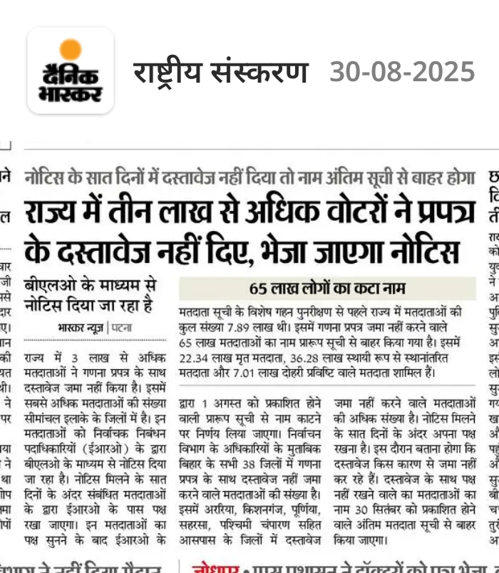 यह नोटिस इसलिए है कि उनका नाम एसआईआर ड्राफ्ट सूची में है, लेकिन उन्होंने अपने दस्तावेज़ जमा नहीं किए हैं. अब उन्हें अपने कागज़ जमा करने हैं, ऐसा नहीं करने पर उनकी नाम फाइनल लिस्ट से हट जाएगा.