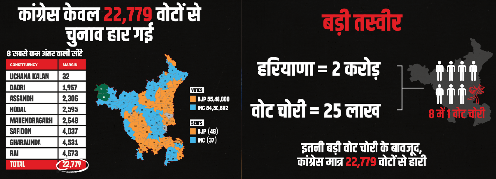 इस दौरान पार्टी ने ‘हरियाणा फाइल्स’ नामक एक दस्तावेज जारी किया, जिसमें उन्होंने हरियाणा विधानसभा चुनावों में बड़े पैमाने पर वोट चोरी के तथ्यात्मक सबूत होने का दावा किया.