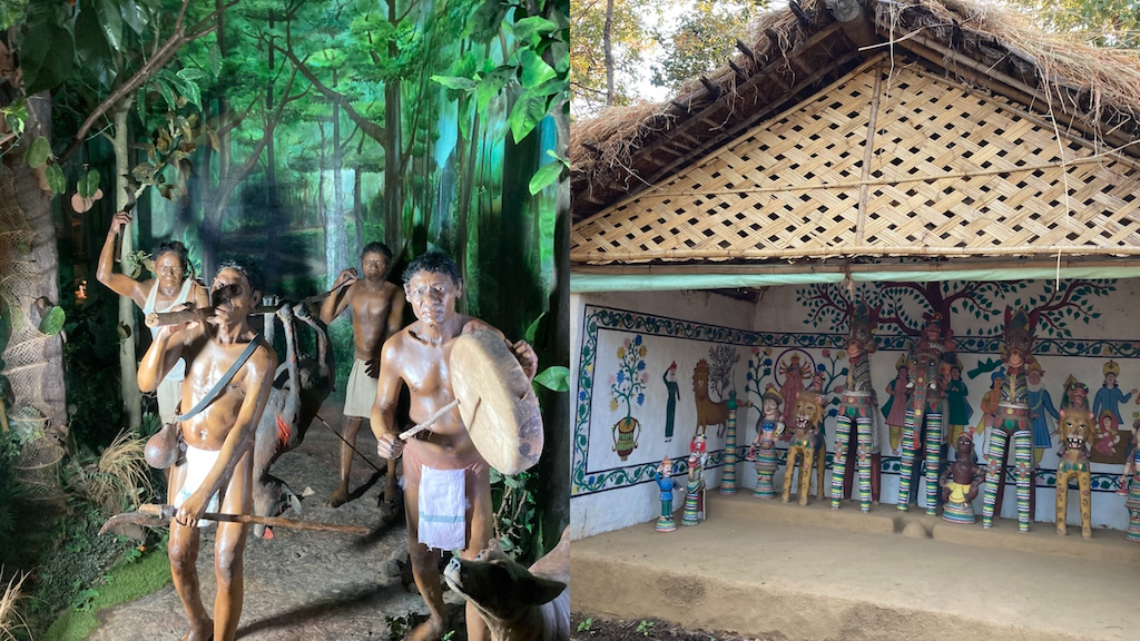 आंध्र प्रदेश के अरकू (बाएं) और भोपाल के के ट्राइबल म्यूजिम में लगी प्रदर्शनियां. (फोटो: संतोषी मरकाम)