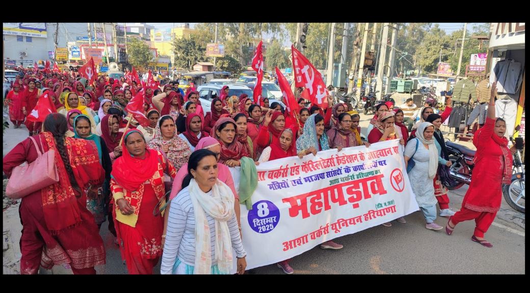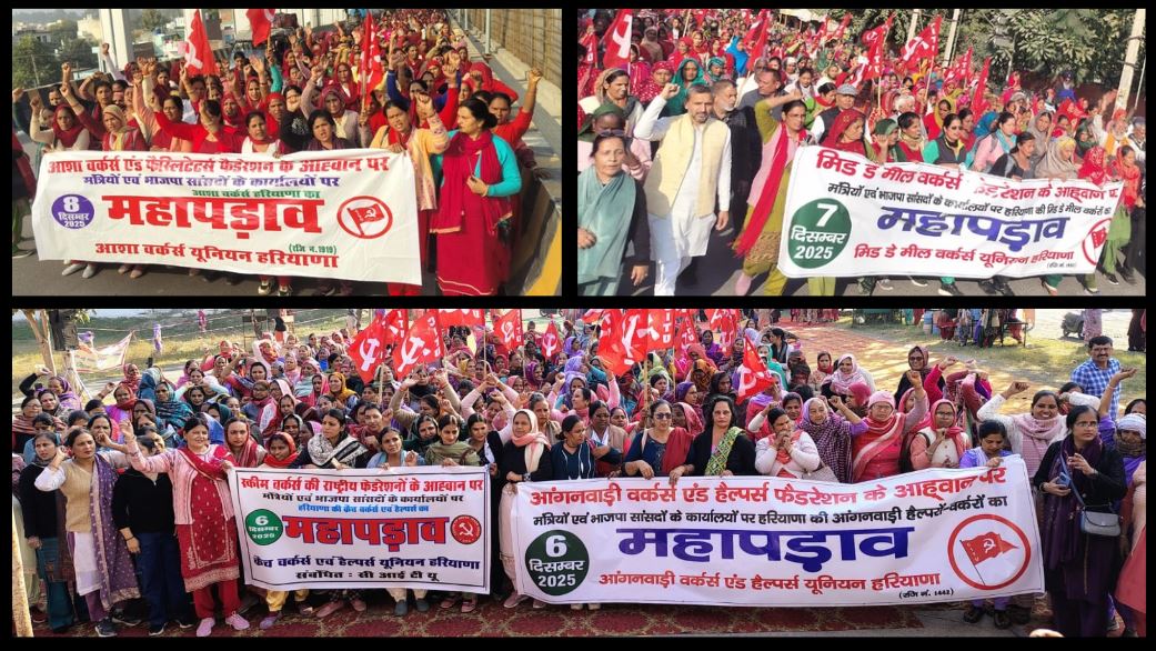हरियाणा के लगभग हर ज़िले में महिला स्कीम वर्कर्स, जिसमें आंगनबाड़ी, मिड डे मील और आशा कार्यकर्ता-सहायिका (जो आशा कार्यकर्ताओं की उनके काम में मदद करती हैं) शामिल हैं, अपनी मांगों को सरकार तक पहुंचाने की कोशिश कर रही हैं. इसी कड़ी में इन कार्यकर्ताओं ने 6-8 दिसंबर के बीच सड़क से लेकर केंद्रीय मंत्रियों और भारतीय जनता पार्टी (भाजपा) सांसदों के कार्यालयों के बाहर धरना दिया, ज्ञापन सौंपे और डबल इंजन सरकार को उनके चुनावी वादों की याद भी दिलाई.