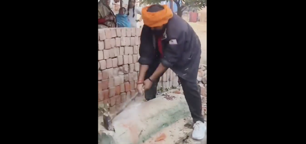 In Fatehpur district of Uttar Pradesh, members of right wing group could be seen vandalising a Mazar using a hammer. One of the vandals could be heard saying people in India have to live by the code of constitution. pic.twitter.com/JBMnlyUEAq