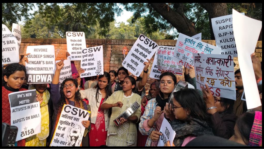 मालूम हो कि उन्नाव के चर्चित माखी बलात्कार मामले में ट्रायल कोर्ट से भारतीय जनता पार्टी (भाजपा) के पूर्व विधायक कुलदीप सिंह सेंगर को 20 दिसंबर 2019 में उम्रक़ैद की सज़ा सुनाई गई थी, जिसे छह साल बाद दिल्ली हाई कोर्ट की एक बेंच ने 23 दिसंबर 2025 को निलंबित कर दिया. इस फैसले के विरोध में सर्वाइवर, उनकी मां और अन्य नागरिक समाज के लोग लगातार विरोध प्रदर्शन कर रहे थे.