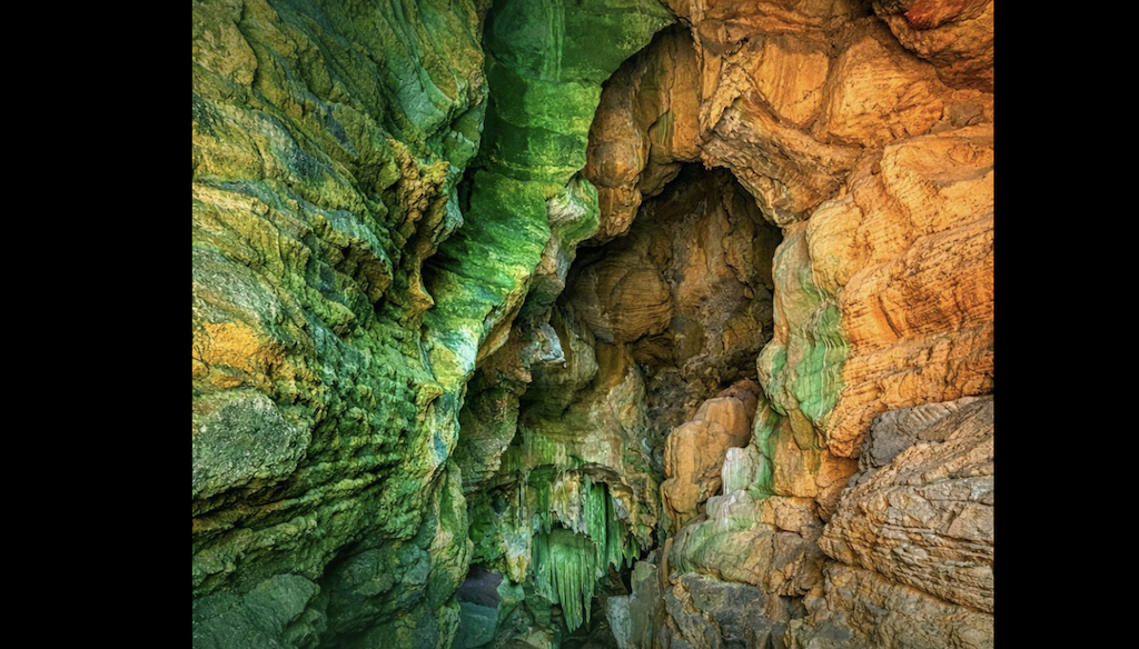 ‘ग्रीन केव’ का नाम गुफा की दीवारों और छत से लटकी चूना-पत्थर की संरचनाओं (स्टैलेक्टाइट्स) पर मौजूद सूक्ष्म हरी माइक्रोबियल परतों के कारण पड़ा है. अपनी विशिष्ट भूवैज्ञानिक विशेषताओं के कारण इसे राष्ट्रीय उद्यान की दुर्लभ गुफाओं में गिना जाता है.