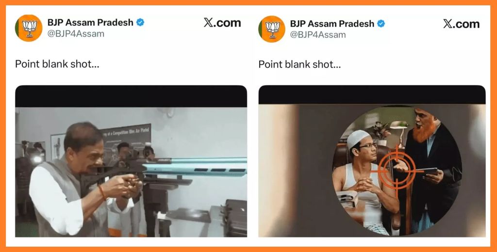 Hate to amplify this but just exposes the depravity from the top. BJP twitter handle shares a meme of Himanta Biswa firing a bullet at Muslims while Prime Minister Modi talks about a grand reception in muslim majority, Malaysia https://t.co/DIRvx7l1Py